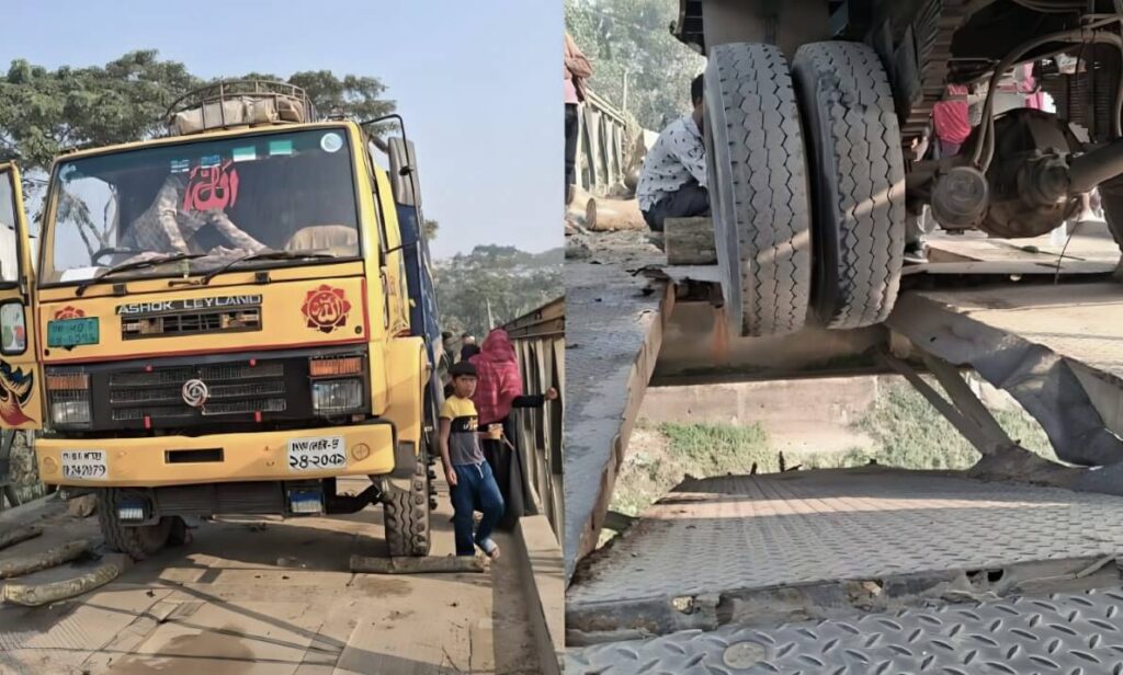 স্থানীয় বাসিন্দারা জানান, প্রায় ২৫ বছর আগে নির্মিত সেতুটি দীর্ঘদিন ধরেই জীর্ণ হয়ে পড়ে ছিল। মরিচা ধরা স্টিলের পাটাতনের ওপর নিয়মিত ভারী যান চলাচল চলায় সেতুটি আরও দুর্বল হয়ে পড়ে। অবশেষে ওভারলোড ট্রাকের চাপে দুটি স্টিল প্লেট ভেঙে দুর্ঘটনা ঘটে। ভাগ্যক্রমে ট্রাকচালক ও সহকারী নিরাপদে বের হয়ে আসতে সক্ষম হন।