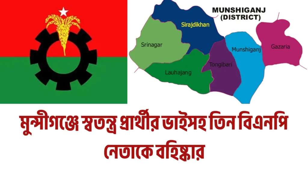মুন্সীগঞ্জ সদর ও গজারিয়া উপজেলা নিয়ে গঠিত মুন্সীগঞ্জ-৩ সংসদীয় আসনে স্বতন্ত্র প্রার্থীর নির্বাচনে অংশগ্রহণকে কেন্দ্র করে কড়া সাংগঠনিক ব্যবস্থা নিয়েছে বাংলাদেশ জাতীয়তাবাদী দল (বিএনপি)। দলীয় সিদ্ধান্ত অমান্যের অভিযোগে এক স্বতন্ত্র প্রার্থীর ভাইসহ তিনজন ইউনিয়ন পর্যায়ের বিএনপি নেতাকে বহিষ্কার করা হয়েছে। একই সঙ্গে বিলুপ্ত ঘোষণা করা হয়েছে দুটি ইউনিয়ন বিএনপির কমিটি।